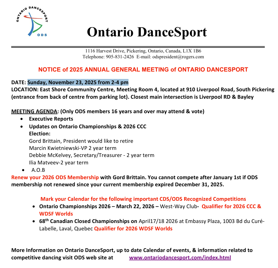 2025 ANNUAL GENERAL MEETING of ONTARIO DANCESPORT.